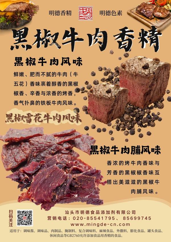 醬香、紅燒牛肉香精 肉香濃郁厚實;烤牛肉風(fēng)味 烤香濃郁、脂肪香特征明顯;蒜香牛肉香精,蒜香十足,牛肉底韻濃厚;黑椒牛肉香精,椒香四溢,辛香肉香融合;鹵水牛肉香精 香味醇厚,讓人垂涎欲滴。明德 牛肉香精 香味濃郁悠長、耐溫性好(耐高溫)、適用性廣、風(fēng)味醇厚。產(chǎn)品參數(shù)